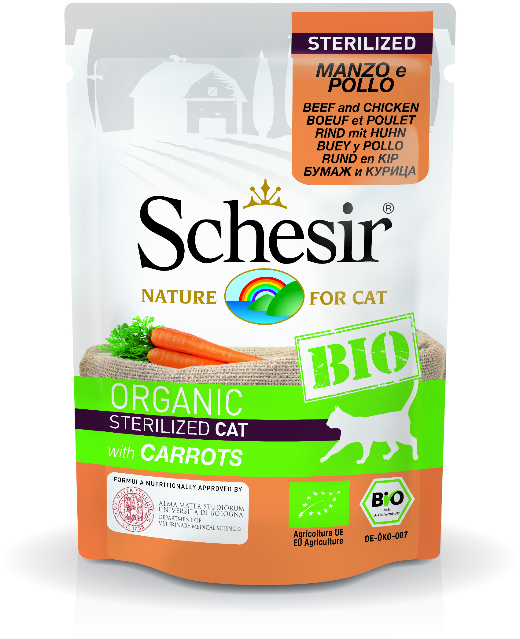 Schesir Bio sobres gato Esterilizado buey y pollo con zanahoria 85gr