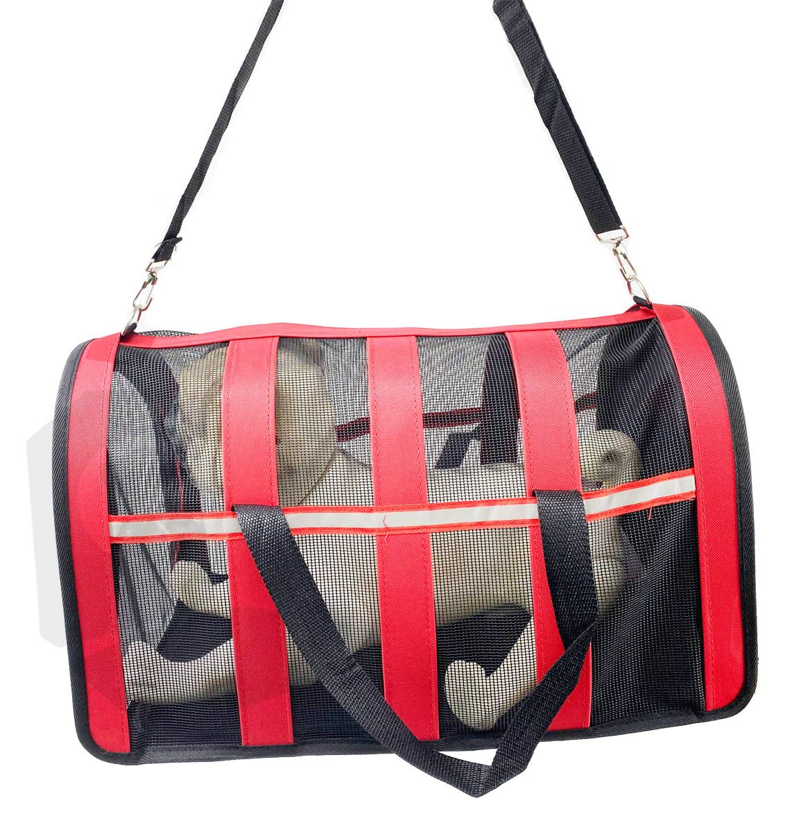 Bolso de transporte respirable en lona y rejilla 48 x 27 x 27cm ROJO