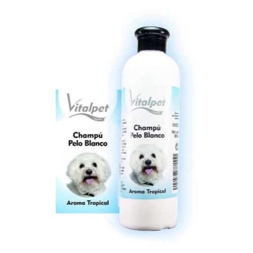 Champú que blanquea las zonas más oscuras unificando la tonalidad general del pelaje y aportando suavidad, volumen y luminosidad.