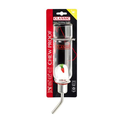 Bebedero Classic de cristal para roedores. Apto para lavavajillas. Ecológico, higiénico y con indicador en forma de zanahoria del nivel del agua.