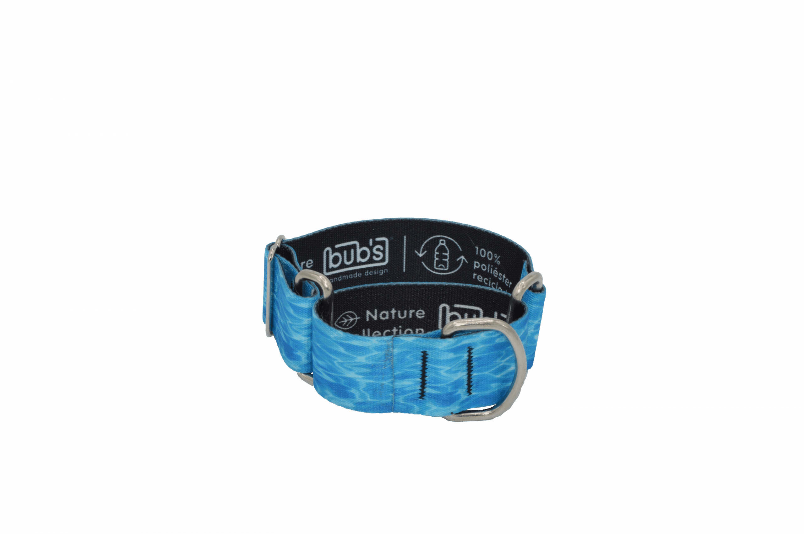 Los collares BUB’S NATURE COLLECTION Martingale están pensados para todo tipo de perros pero especialmente para galgos, Piccolo talla S, Whippet talla M, Greyhound talla L, otros tipos de perro talla XL.Las medidas del cuello SIN CONTAR LA PARTE MARTINGALE son: Talla S de 16 a 23 cm, talla M de 22 a 34 cm, talla L de 25 a 38 cm, talla XL de 35 a 57 cm. Los anchos de las cintas son de 40 mm las tallas S/M y de 50 mm las tallas L/XL. Los herrajes son metálicos y el poliester de la cinta es 100% RECICLADO, los estampados estan inspirados en la naturaleza (LAVA /AQUA) ya que al ser producto reciclado ayuda a la conservación del medio ambiente reduciendo las emisiones de CO2. Las medidas de la parte martingale es de + 10 cm para poder pasar el collar por la cabeza,pero no para tamaño del cuello.
