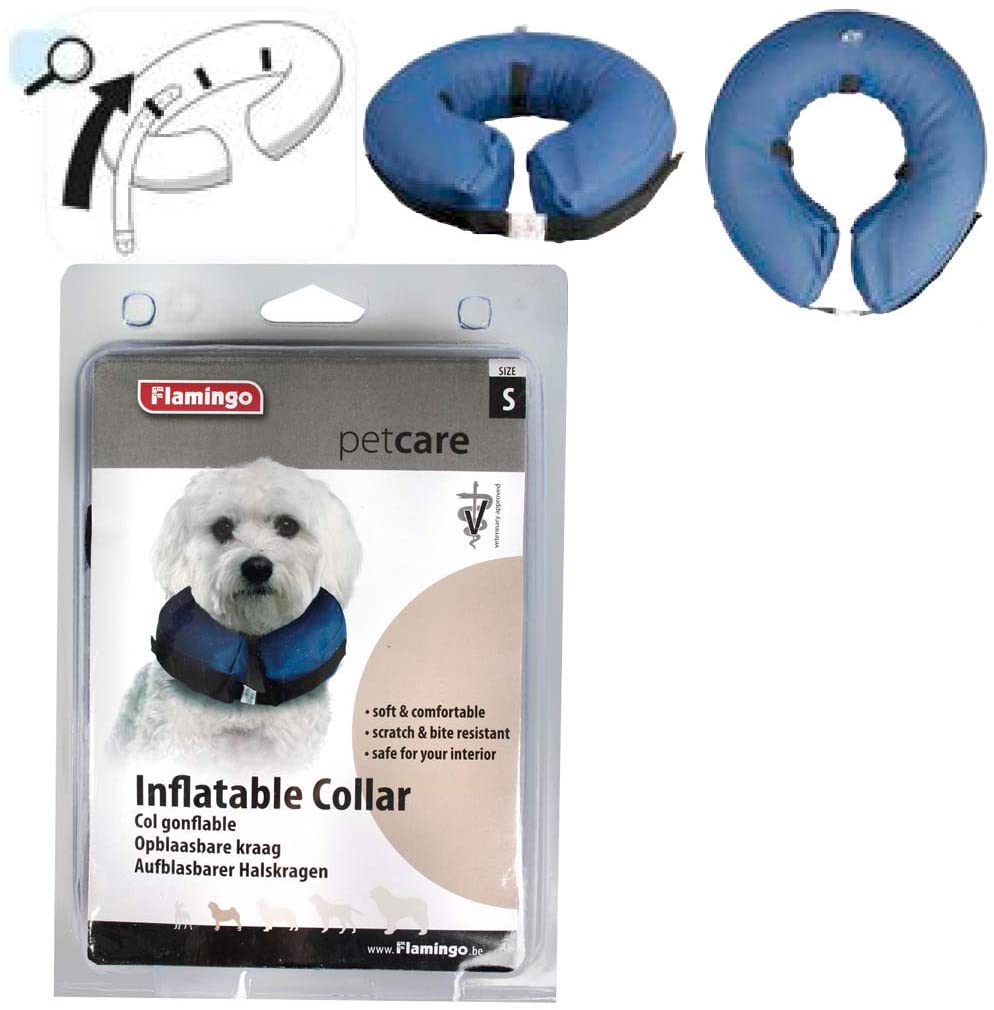 El nuevo collar postoperatorio está hecho con material inflable muy resistente y nada molesto que permitirá a tu perro o gato hacer sus actividades diarias como jugar, moverse, dormir y comer sin producirle ninguna incomodidad, ya que su exterior está hecho de lona suave. A pesar de ser suave tiene la dureza suficiente para aguantar los arañazos, raspaduras y mordeduras y puede ser reutilizado cuantas veces sea necesario.