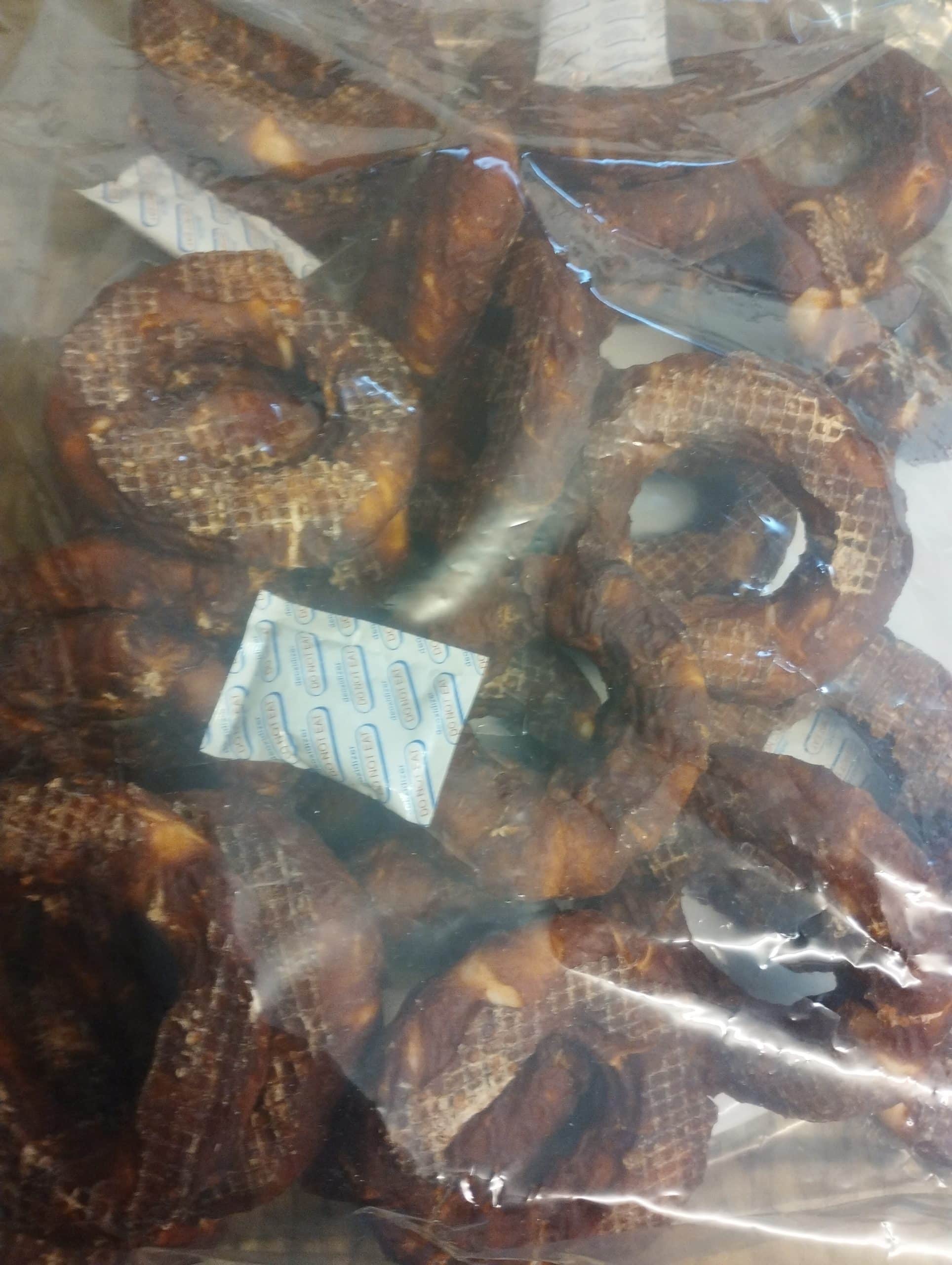 COMPOSICIÓN : POLLO 45 % , CUERO CRUDO 49 %, ALMIDÓN 4% ,GLICERINA 1.8 % SAL 0.1 % , SORBATO DE POTASIO 0.1%