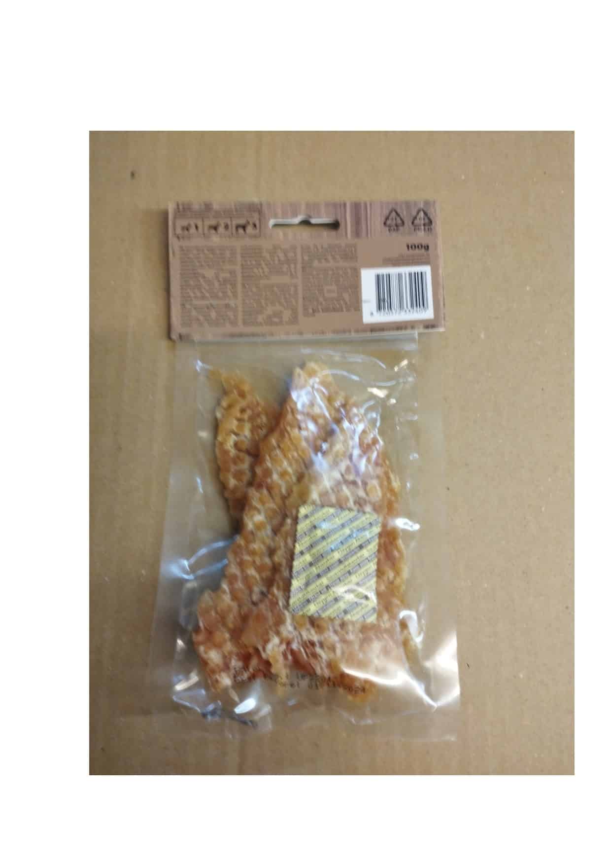 INGREDIENTES : POLLO 92 % , PROTEINAS VEGETALES 5.5 % , GLICERINA 2.25%