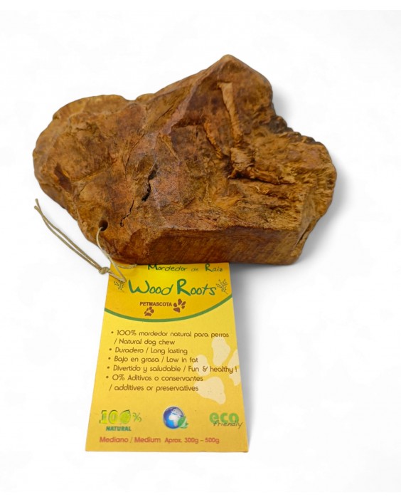 Mordedor resistente y duradero 100% natural, pensado principalmente para los perros con problemas de sobrepeso, ya que puede ser el juguete perfecto durante horas, sin aportarle grasas, aditivos, gluten o fragancias artificiales. Su forma caprichosa es un reto para nuestra mascota, tallado a mano y seleccionado según distintos tamaños, no encontrarás uno igual a otro.