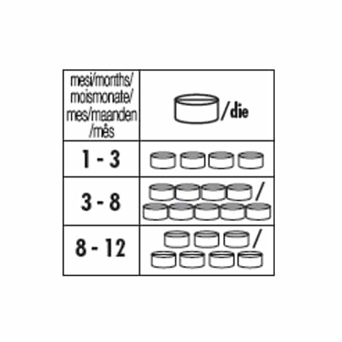 Aditivos nutricionales/kg: vit. A 1700 U.I., vit. E 180mg, taurine 200mg, sulfato de zinc heptahidratado 35 mg, sulfato manganoso monohidratado 13 mg, yoduro de potasio 10 mg, sulfato cúprico pentahidratado 3 mg.