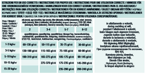 Componentes analíticos y Kcal/kg: Proteína 27% Grasa bruta 17% Fibras brutas 2% Ceniza bruta 6,3% Calcio 1,1% Fósforo 0,8% Magnesio 0,1% Sodio 0,37% Potasio 0,62% Humedad 10% Omega 6 2,25% Omega 3 0,41% EPA 0,06% DHA 0,07% 395 kcal/100g