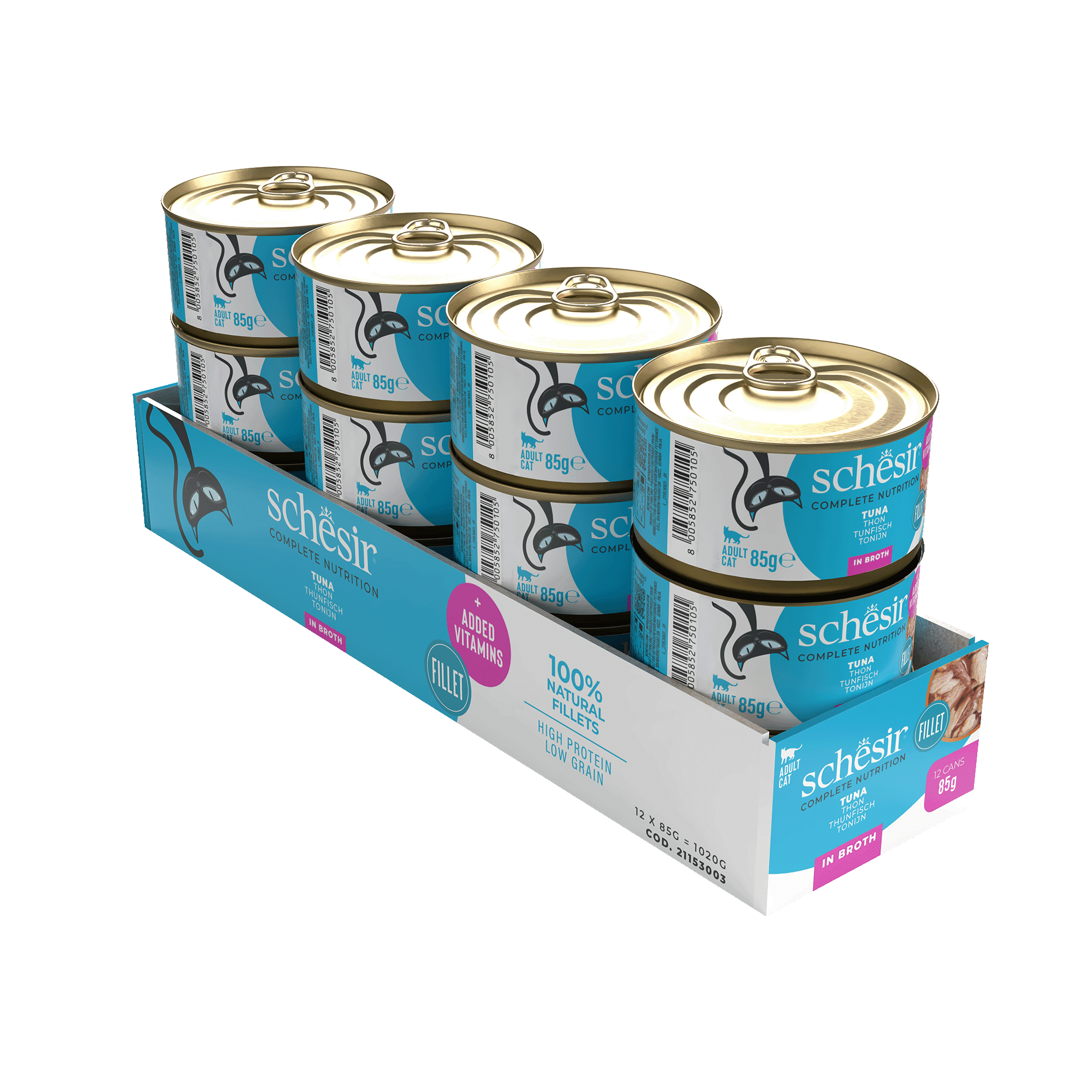 Suministrar hasta dos latas por día, acompañadas de piensos húmedos completos y/o croquetas Schesir. Servir a temperatura ambiente. Conservar en el frigorífico una vez abiertas y consumir en menos de 48 horas.
