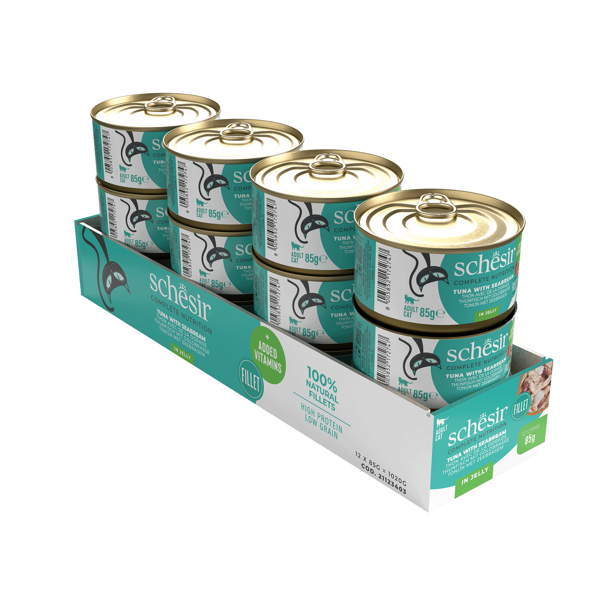 Suministrar hasta dos latas por día, acompañadas de piensos húmedos completos y/o croquetas Schesir. Servir a temperatura ambiente. Conservar en el frigorífico una vez abiertas y consumir en menos de 48 horas.