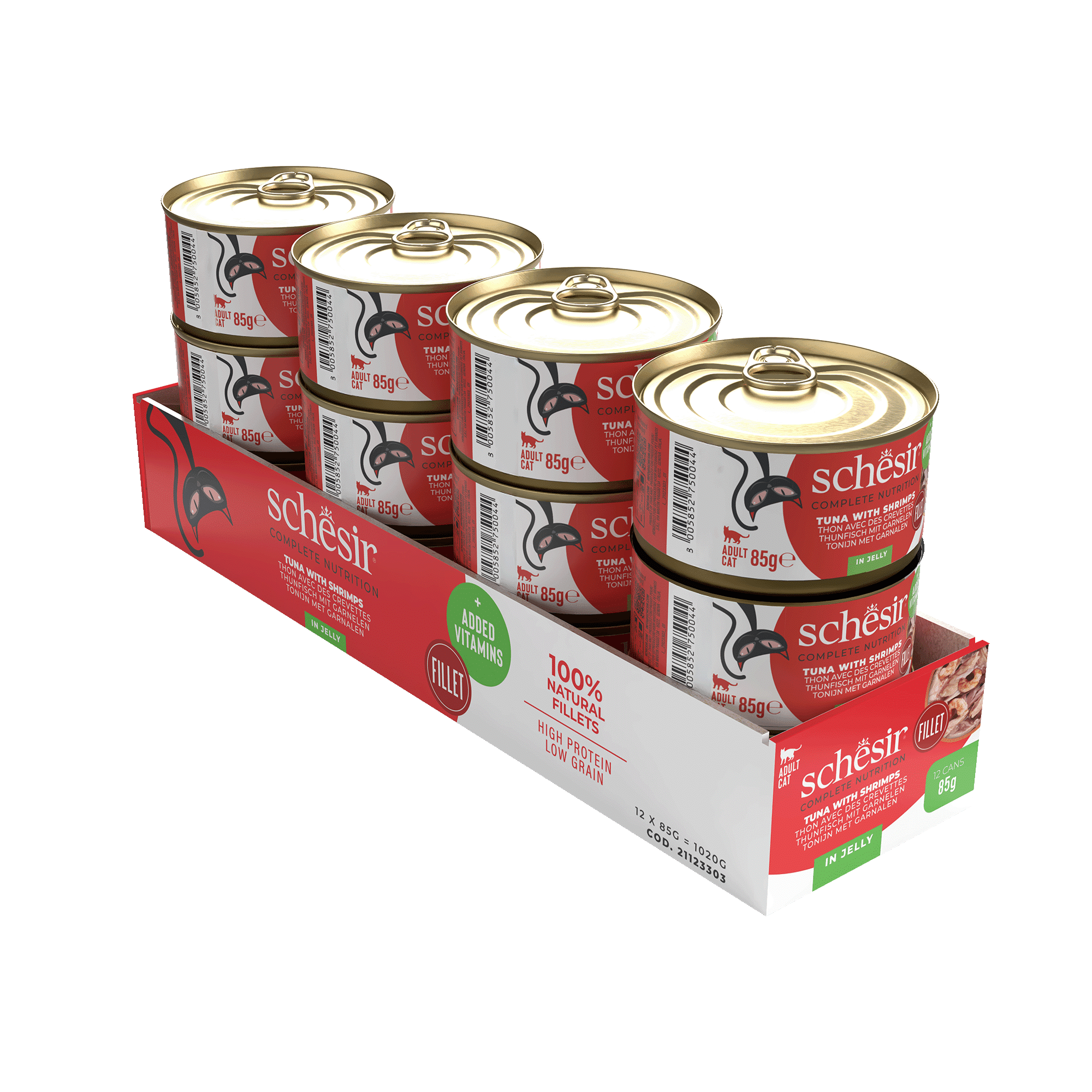 Suministrar hasta dos latas por día, acompañadas de piensos húmedos completos y/o croquetas Schesir. Servir a temperatura ambiente. Conservar en el frigorífico una vez abiertas y consumir en menos de 48 horas.