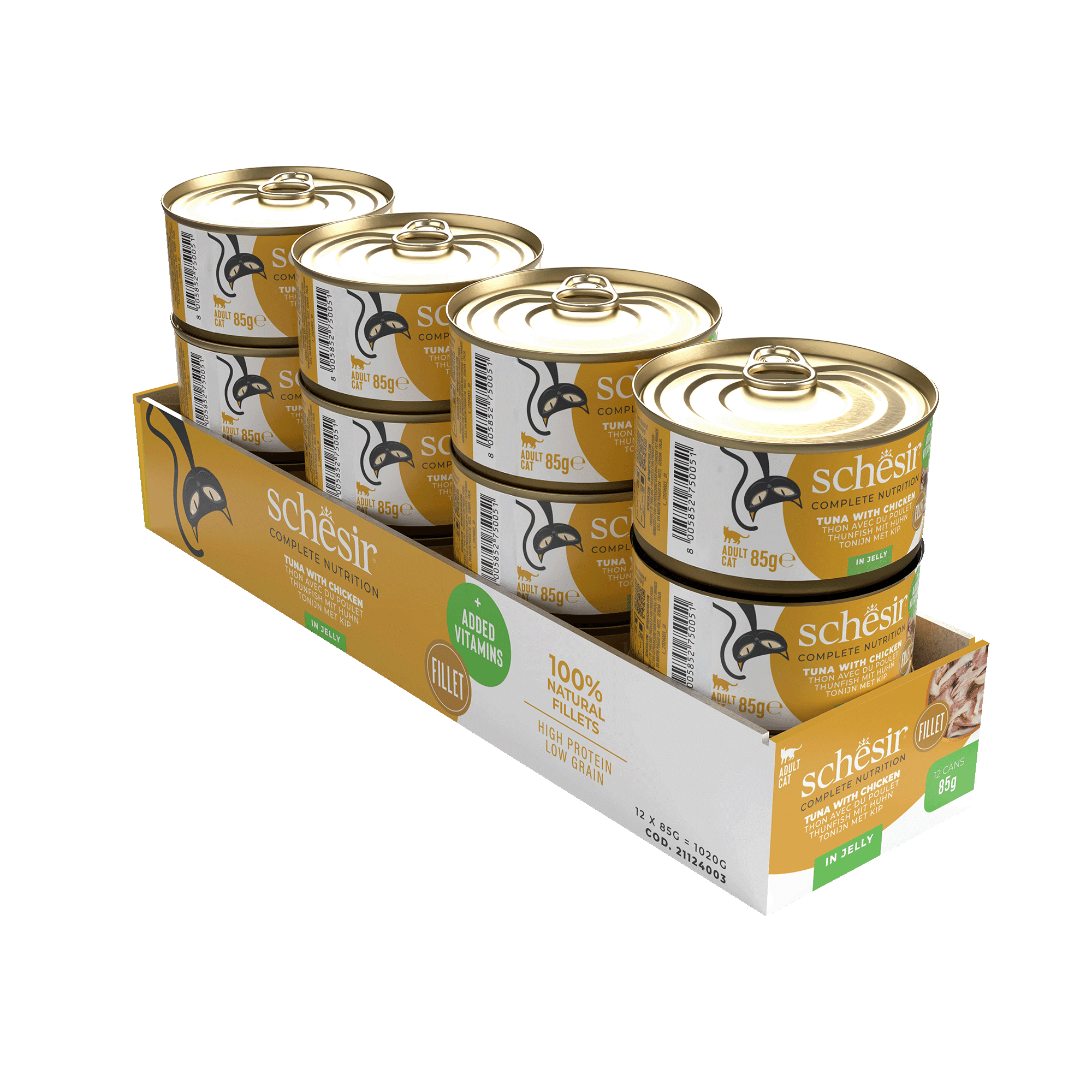 Suministrar hasta dos latas por día, acompañadas de piensos húmedos completos y/o croquetas Schesir. Servir a temperatura ambiente. Conservar en el frigorífico una vez abiertas y consumir en menos de 48 horas.