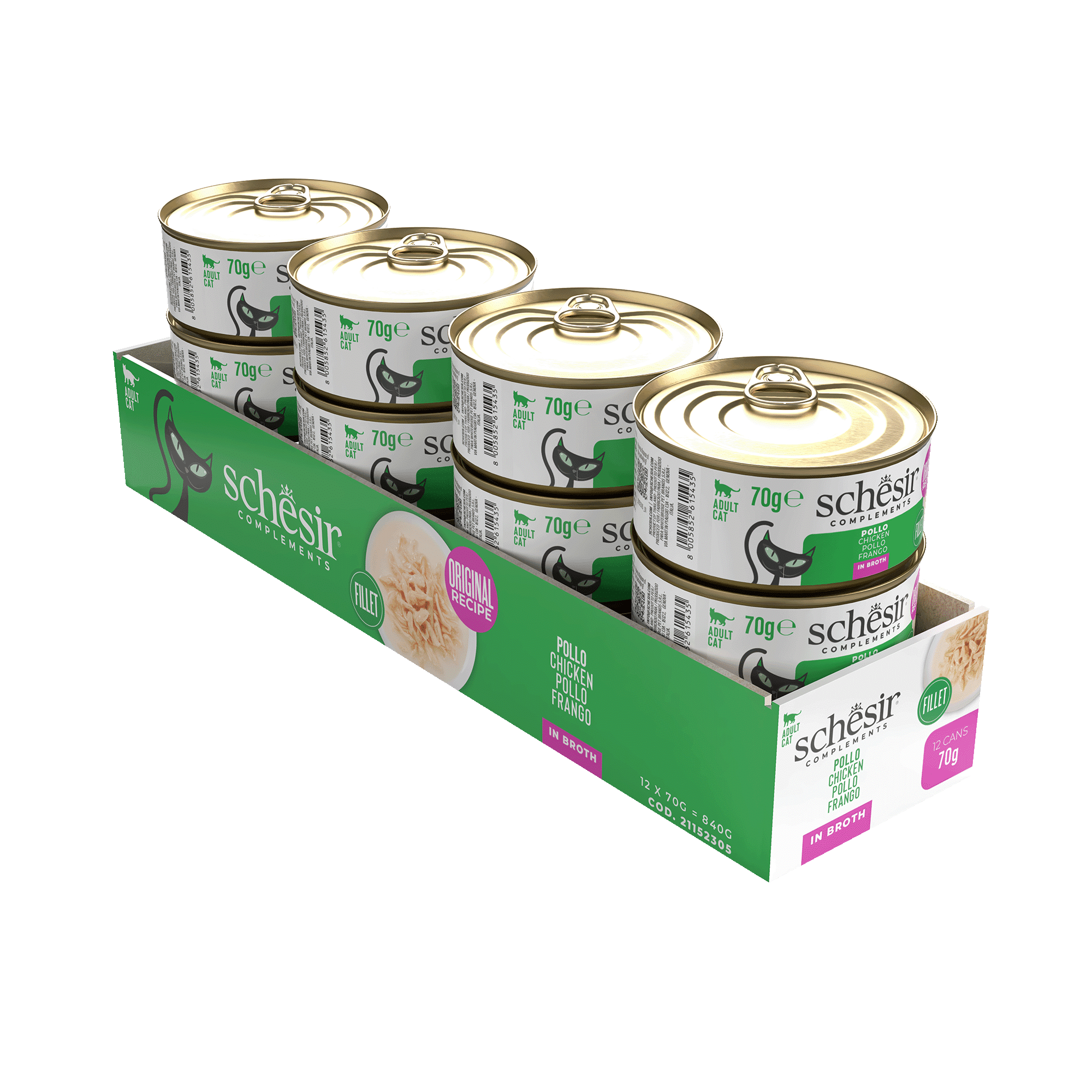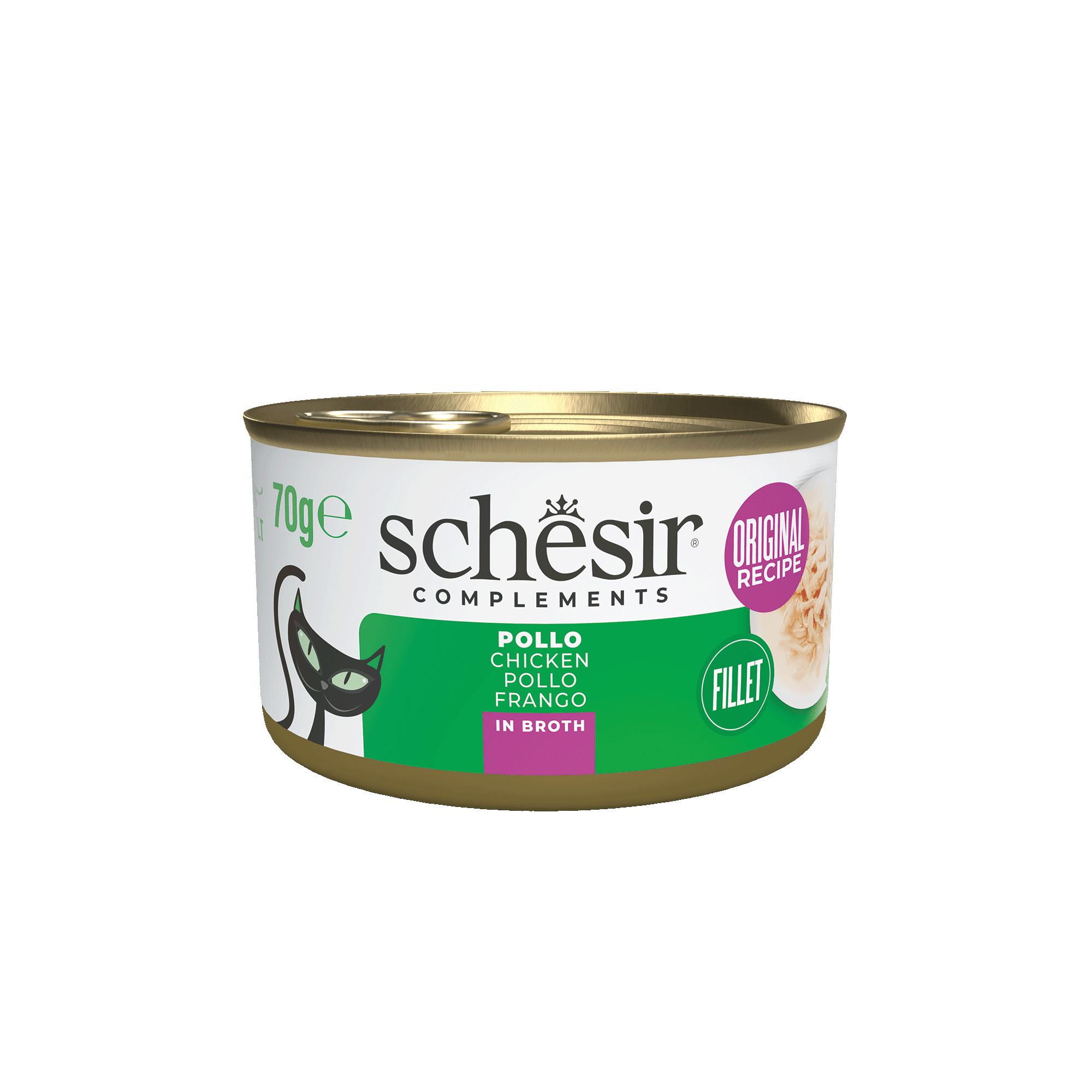 Suministrar hasta dos latas por día, acompañadas de piensos húmedos completos y/o croquetas Schesir. Servir a temperatura ambiente. Conservar en el frigorífico una vez abiertas y consumir en menos de 48 horas.