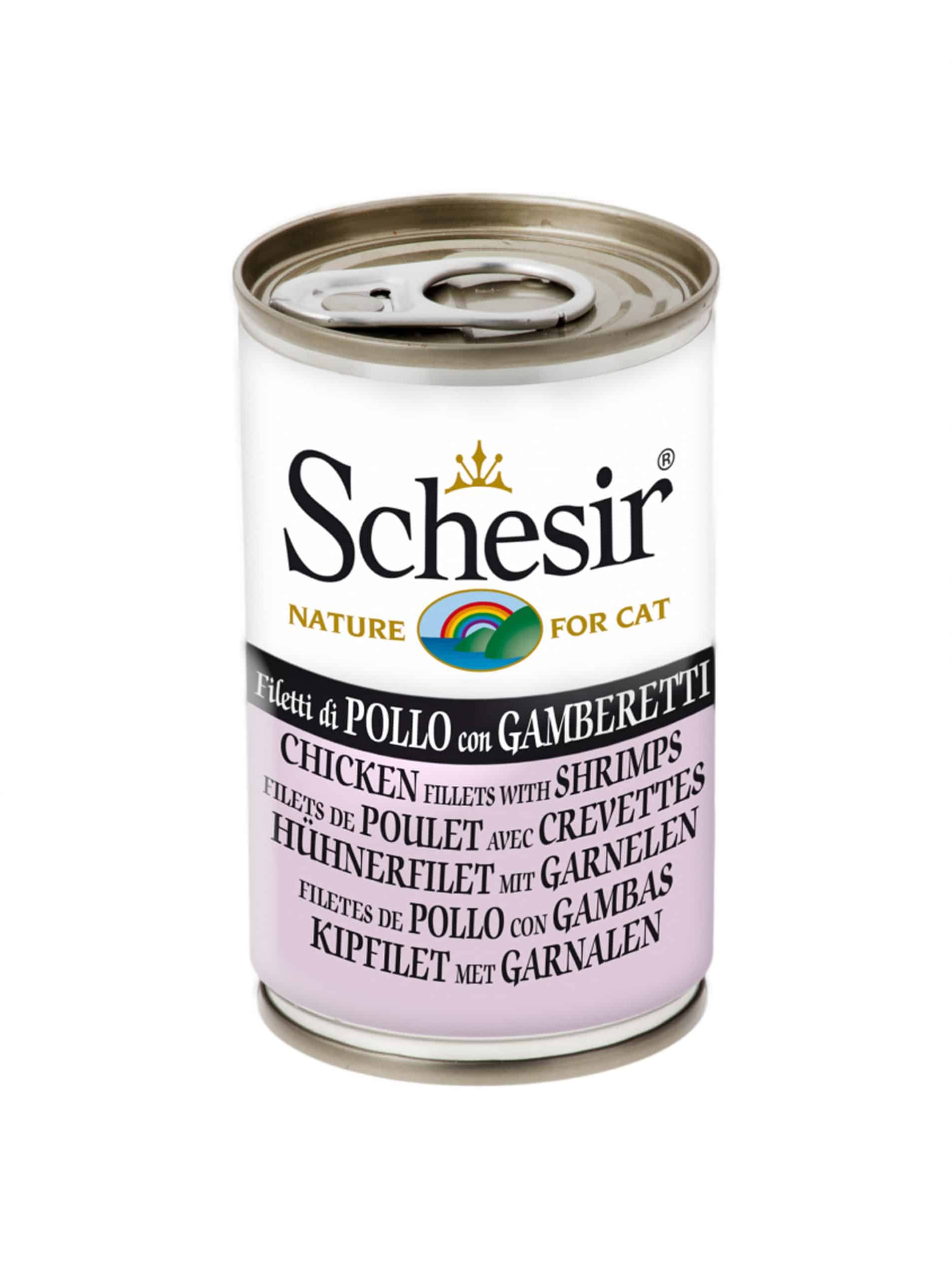 Suministrar hasta dos latas por día, acompañadas de piensos húmedos completos y/o croquetas Schesir. Servir a temperatura ambiente. Conservar en el frigorífico una vez abiertas y consumir en menos de 48 horas.