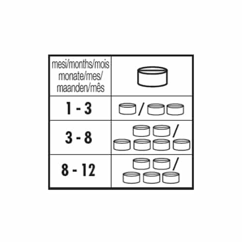 Ver tabla. La alternancia con croquetas Schesir es recomendable para obtener un nutrición completa. Servir a temperatura ambiente. Conservar en el frigorífico una vez abiertas y consumir en menos de 48 horas.