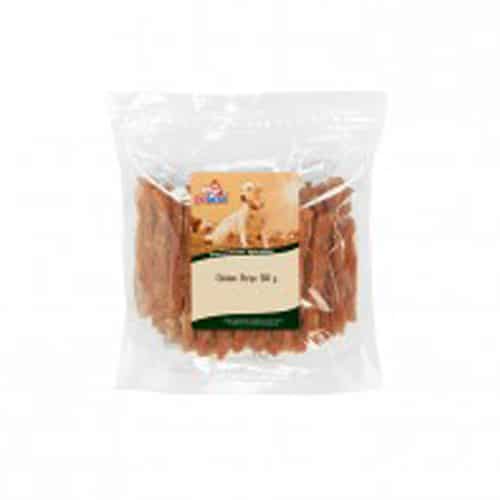 Tiras de pollo de carne de pechuga de pollo de primera clase 100%, con una alta aceptación por parte de todos los perros. Elaboradas con carne fresca de pollo y secadas al aire. Libre de grasa casi el 100%, más fácil de digerir y por tanto adecuado para los perros con obesidad y alergias.